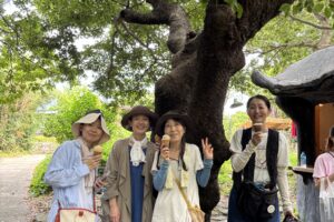 佐久島東港から徒歩5分大浦海水浴場前になります。